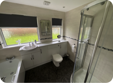 Full height walk-in corner shower (mains fed)